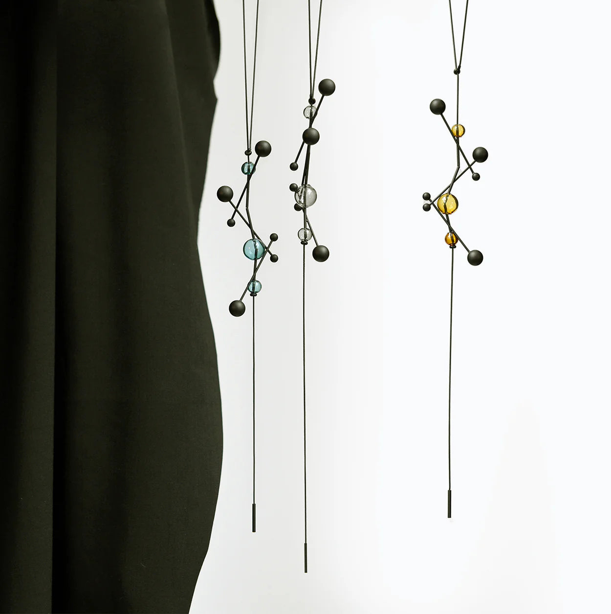 Introducing an extension of the Vera necklace, this lariat version offers a dynamic twist. Unlike the mature aesthetic of Vera, the spindling pendants in this design bring a versatile flair, catering to a wider range of outfits and demographics.