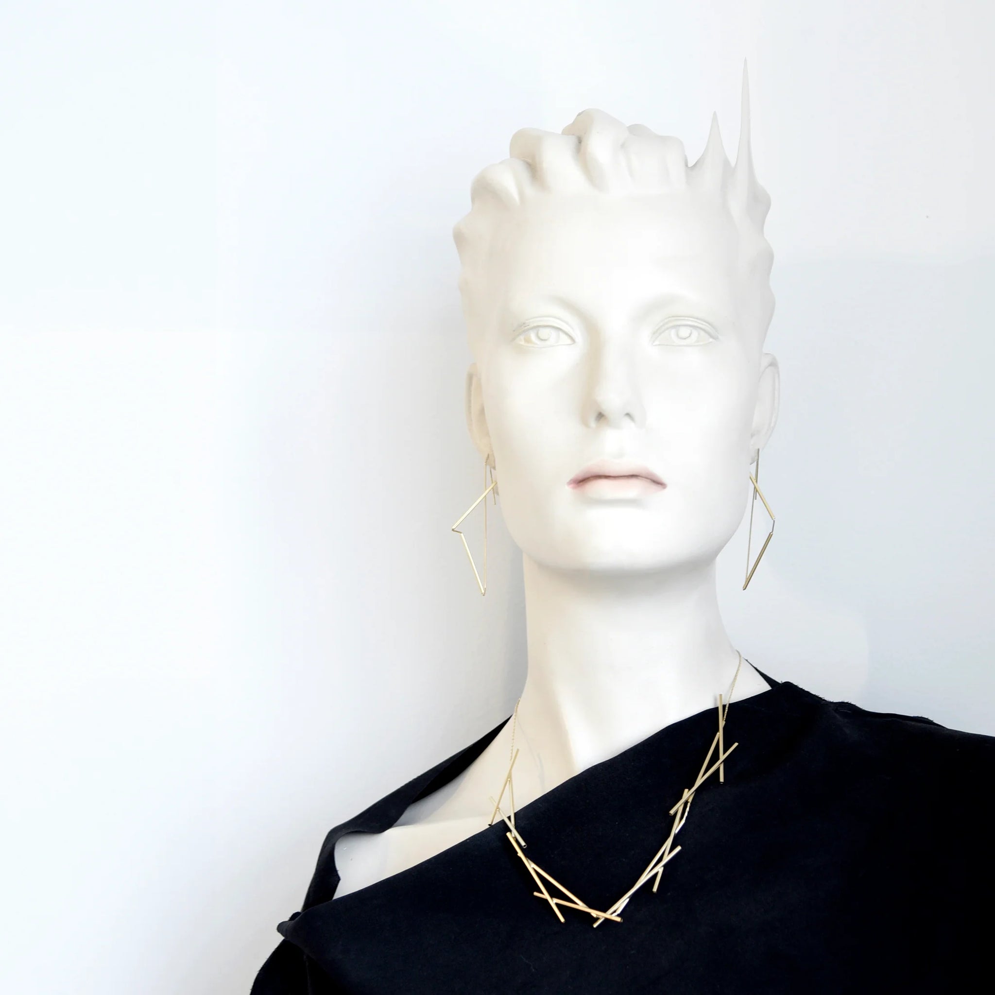 Brass finished with 12K Gold plating, Rhodium and Black Zinc