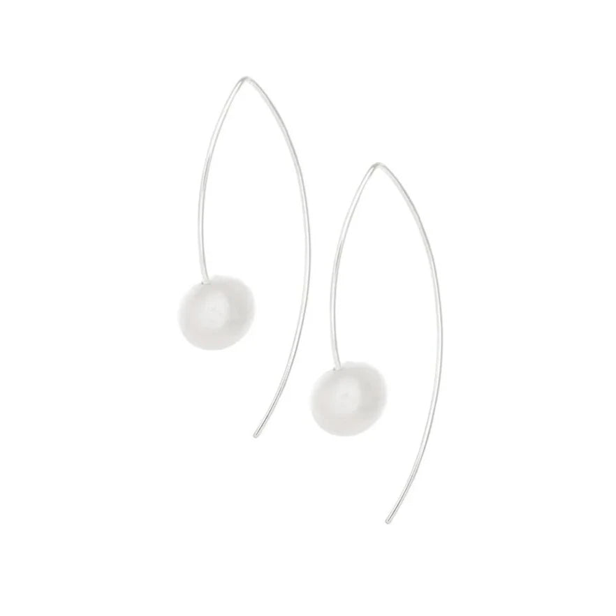 Genuine freshwater pearls take centre stage in these simple and contemporary earrings. The pearls measure approximately 8mm in diameter and are mounted on 4.5cm long earrings.