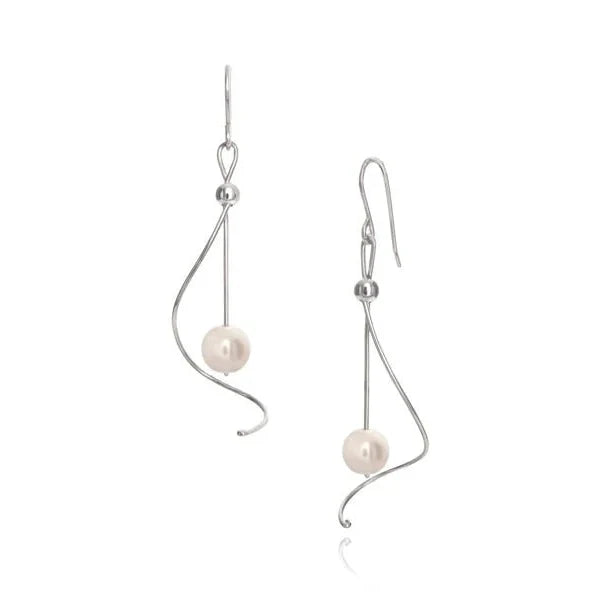 Handcrafted with white freshwater pearls in sterling silver or 14K gold-filled, these earrings measure 5.5 cm long x 1.5 cm wide.