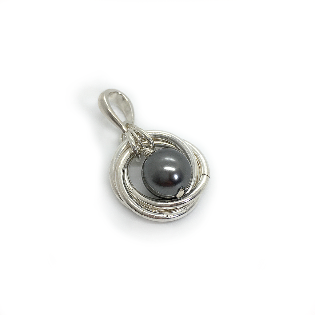 Sterling silver and Swarovski crystal pearls in dark grey, platinum and cream colours.